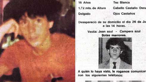 Diego, que iba a la ENET N° 36 y jugaba al fútbol en Excursionistas, fue visto por última vez el 26 de julio de 1984, tras almorzar en su casa y salir hacia lo de un amigo. Nunca regresó. Sus padres, que intentaron radicar la denuncia esa misma noche, fueron desoídos por la Policía: “Ya va a volver, se fue con una mina”, les dijeron. Desde entonces, lo buscaron por medios propios, con panfletos y una única nota publicada en la revista de casos policiales “¡Esto!”, en 1986.